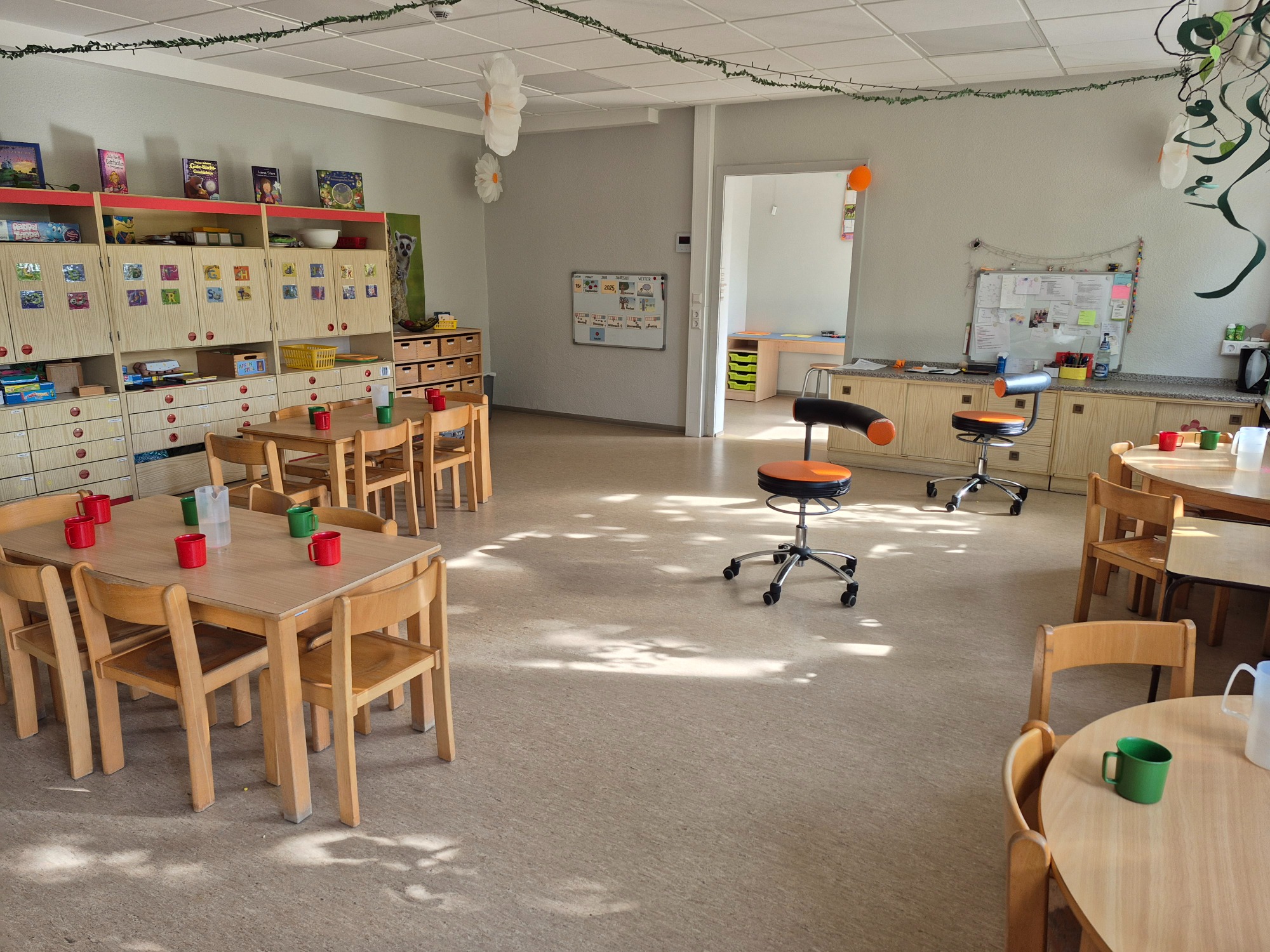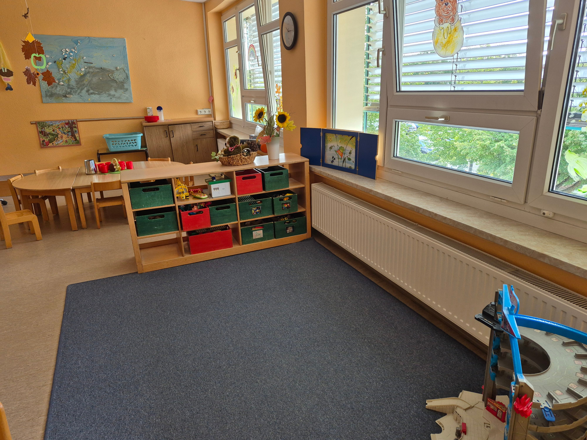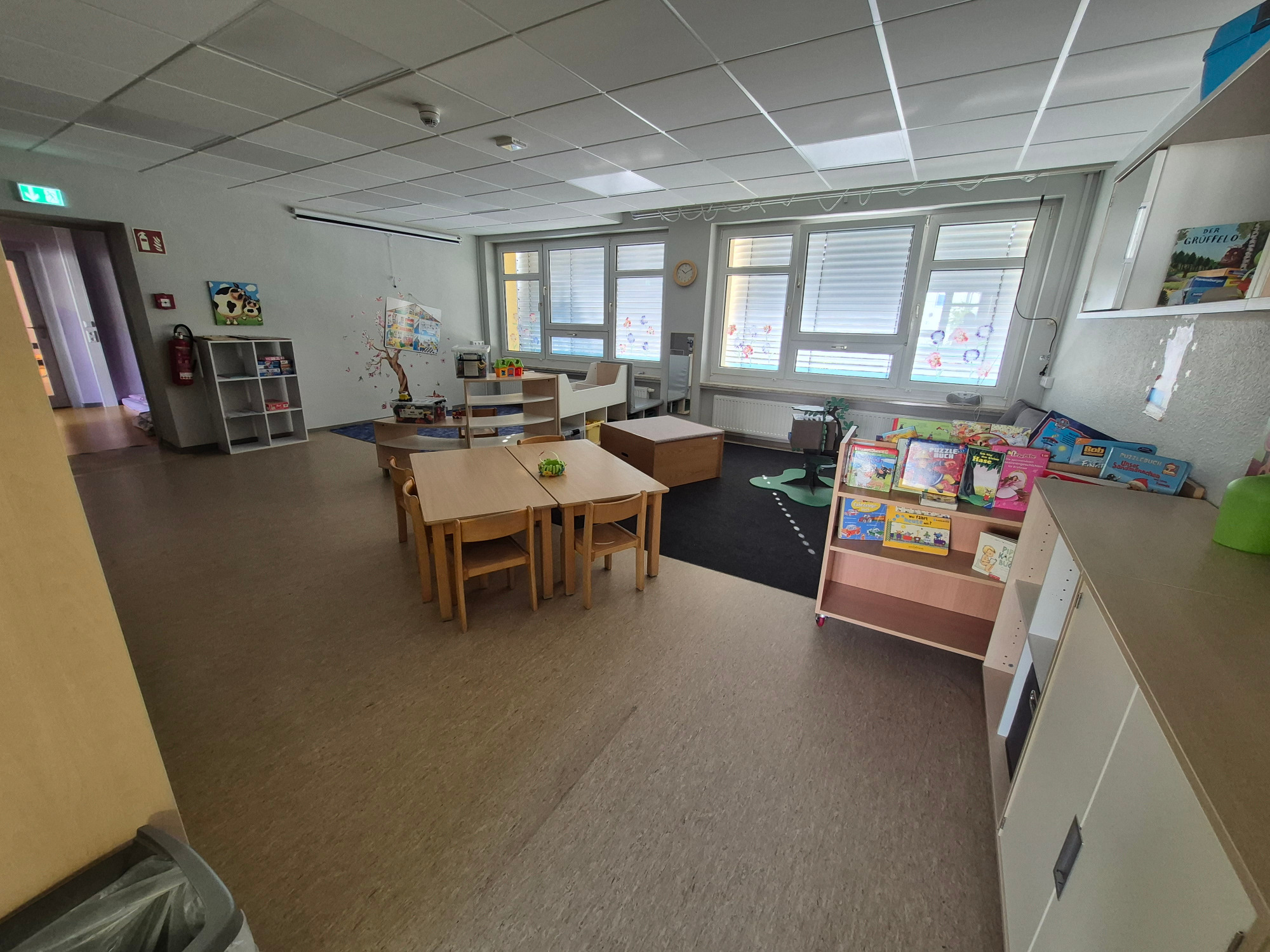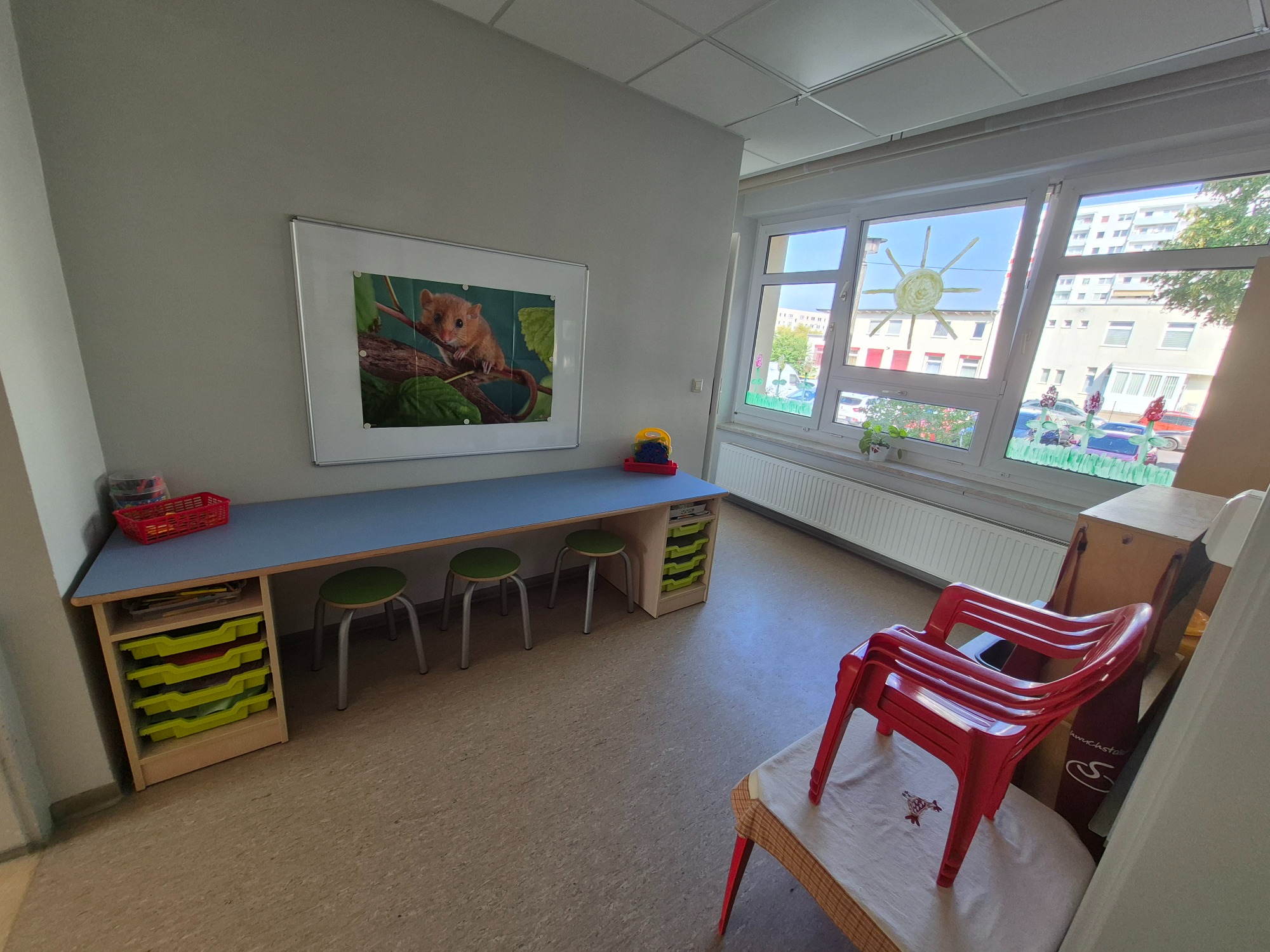 Bei den Erdmännchen können bis zu 24 Kinder einen Ort zum Lernen finden. In zwei verbundenen Gruppenräumen werden die Kinder betreut.