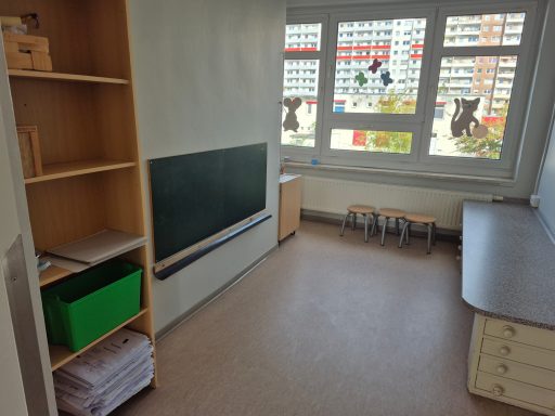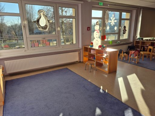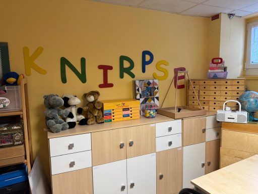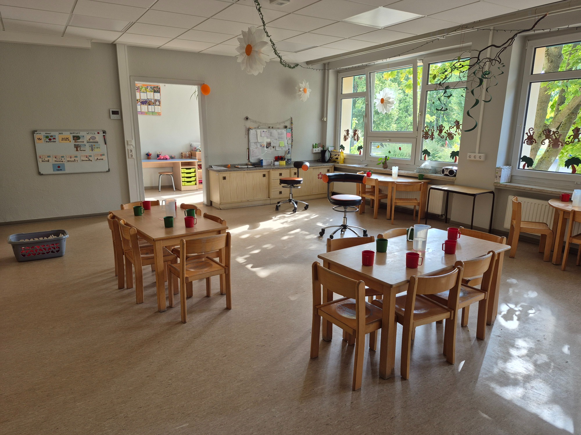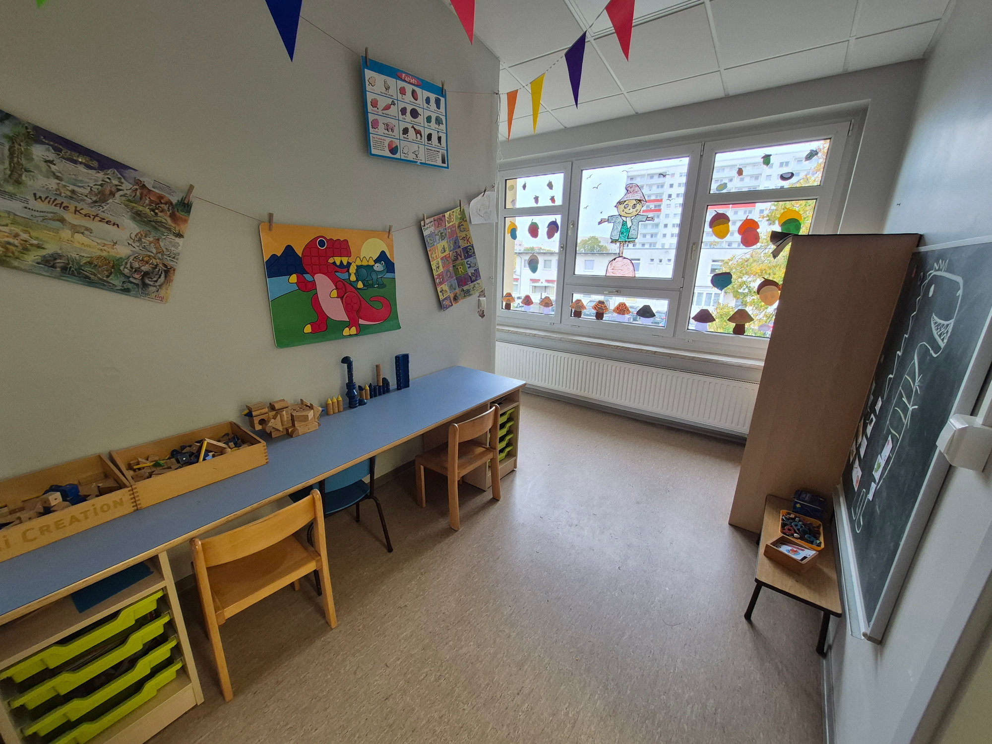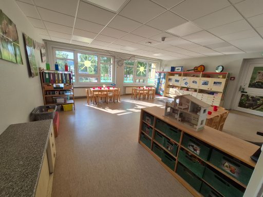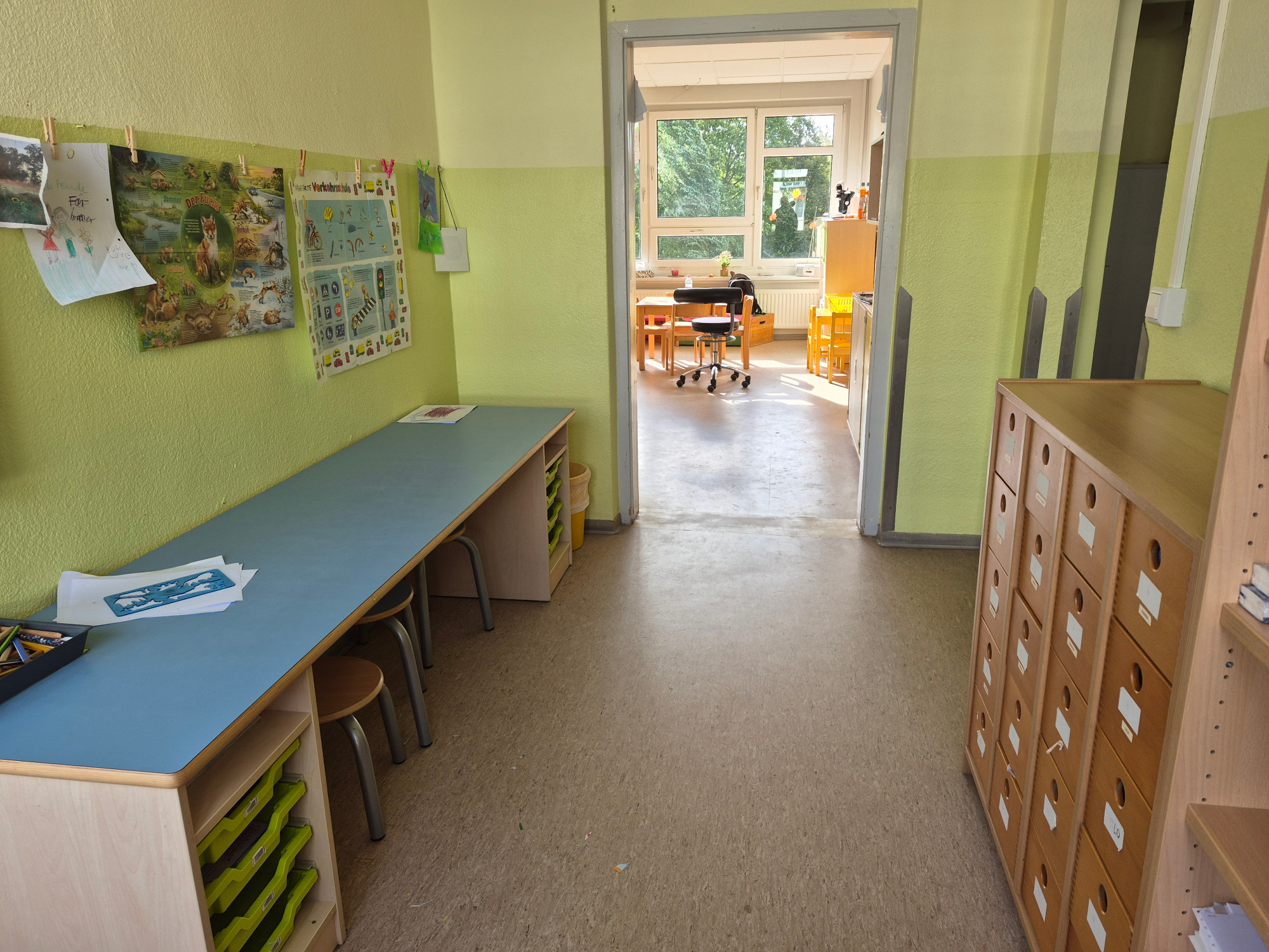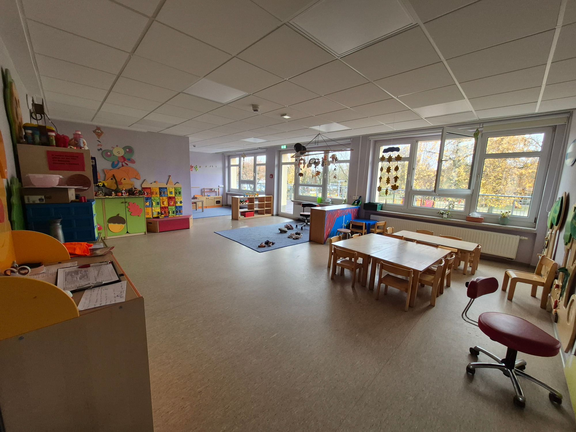 Bei den Erdmännchen können bis zu 24 Kinder einen Ort zum Lernen finden. In zwei verbundenen Gruppenräumen werden die Kinder betreut.