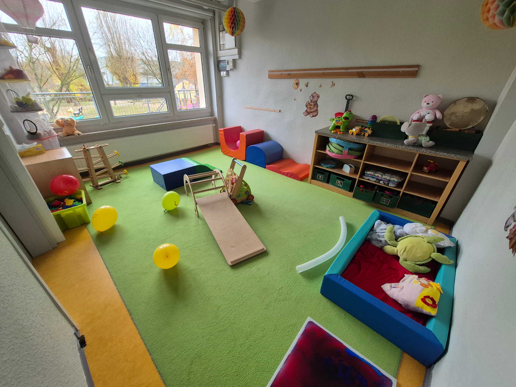 Bis zu 18 Kinder werden in dieser Krippen-Gruppe begleitet. Hier erlernen sie wichtige Meilensteine zu einem selbstständigen Leben.